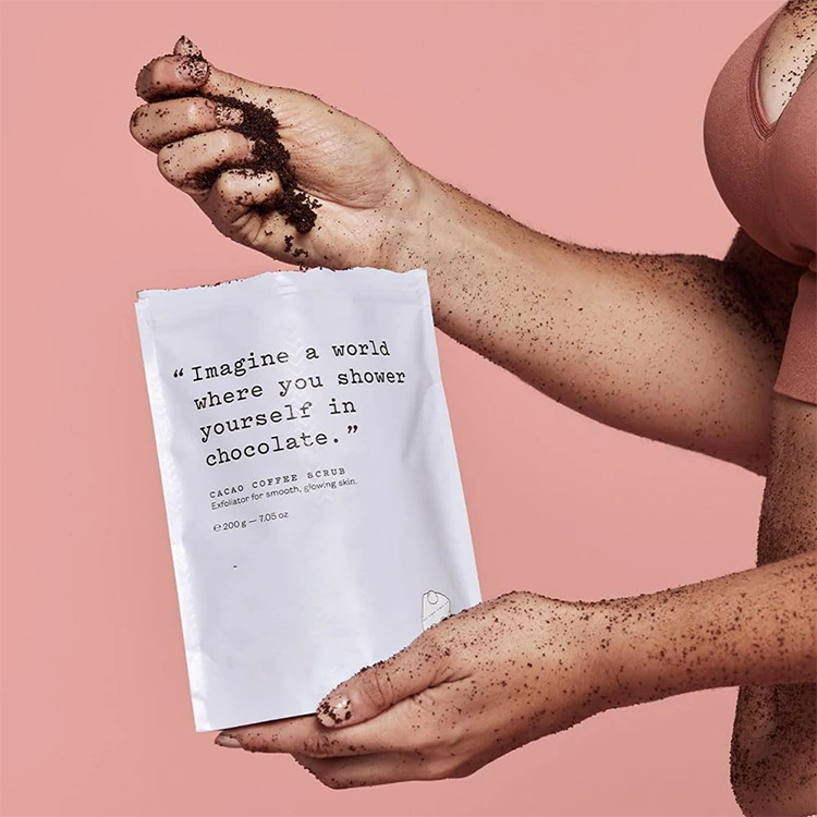 การออกแบบถุง 200 กรัมสะดวกสำหรับการพกพาและจัดเก็บ ไม่ว่าคุณจะเพลิดเพลินไปกับช่วงเวลาการดูแลผิวที่หรูหราที่บ้านหรือการเดินทางก็สามารถตอบสนองความต้องการด้านการดูแลผิวของคุณได้อย่างง่ายดาย ทุกครั้งที่คุณใช้มันเพียงแค่หยิบสครับกาแฟโคโค่จำนวนหนึ่งที่เหมาะสมใช้มันอย่างสม่ำเสมอบนผิวหนังของคุณและนวดเบา ๆ สักครู่ คุณจะได้เห็นการเปลี่ยนแปลงที่น่าอัศจรรย์ของผิวของคุณ ด้วยประสิทธิภาพที่มีค่าใช้จ่ายสูงมากทำให้ผู้คนได้รับประสบการณ์การดูแลผิวระดับมืออาชีพมากขึ้นได้อย่างง่ายดาย